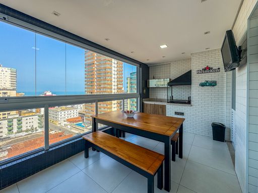 Apartamento à venda em Praia Grande na Vila Tupi Este apartamento à venda em Praia Grande, localizado na Vila Tupi, oferece uma excelente oportunidade para quem busca qualidade de vida e conforto à beira-mar. Com 131,42 metros quadrados de área útil, o imóvel conta com três quartos, sendo duas suítes, além de um banheiro social. A sacada gourmet, equipada com churrasqueira à carvão, é ideal para momentos de lazer com a família e amigos, e proporciona uma vista incrível da região. O apartamento está totalmente mobiliado e possui ar condicionado nas suítes, além de uma cozinha planejada que atende a todas as necessidades do dia a dia. O empreendimento é de frente para o mar, o que garante uma vista privilegiada e um ambiente tranquilo e agradável. Com portaria presencial 24 horas, segurança e comodidade são garantidos, além de contar com diversas opções de lazer, como piscina, salão de festas, salão de jogos e academia. O imóvel possui duas vagas de garagem demarcadas e livres, o que traz mais praticidade e conforto para quem possui veículos. Sem dúvidas, este é um imóvel completo, ideal para quem deseja viver bem, perto do mar e com total infraestrutura. Características do Imóvel: Aceita Financiamento Bancário Empreendimento Frente Mar 3 Quartos 2 Suítes 2 Vagas Demarcadas/Livres 1 Banheiro Social 131,42 Metros de Área Útil Sacada Gourmet Churrasqueira à Carvão Totalmente Mobiliado Ar Condicionado nas Suítes Sala Espaçosa e Mobiliada Cozinha Planejada Sobre o Empreendimento: Portaria Presencial 24 Horas Piscina Salão de Festas Salão de Jogos Academia Solarium Benefícios de morar na Vila Tupi: A Vila Tupi, em Praia Grande, é um bairro que oferece uma excelente qualidade de vida, com infraestrutura completa e fácil acesso aos principais pontos da cidade. A localização privilegiada, frente ao mar, garante tranquilidade e praticidade para quem deseja estar perto da praia. Além disso, a região conta com uma grande variedade de serviços e comércios, como restaurantes, escolas e supermercados, proporcionando todo o conforto e conveniência no dia a dia. Se você busca um lugar para viver bem, a Vila Tupi é a escolha ideal.