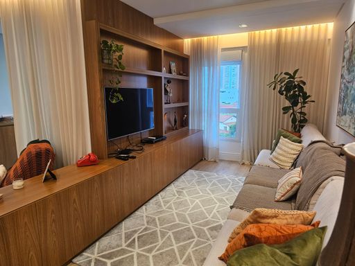 - Área útil: 96m²; - 2 Suítes com armários planejados sendo a master com ar condicionado; - Escritório planejado; - Sala de jantar com ar condicionado; - Sala de estar espaçosa , arejada e iluminada; - Cozinha e área de serviço planejadas e integradas; - Dispensa planejada; - Iluminação em LED; - 2 Vagas de garagem cobertas. obs: o apartamento será locado semi mobiliado , com fogão, geladeira, forno elétrico, microondas, máquina de lavar e secar, máquina de lavar louça e sofá.